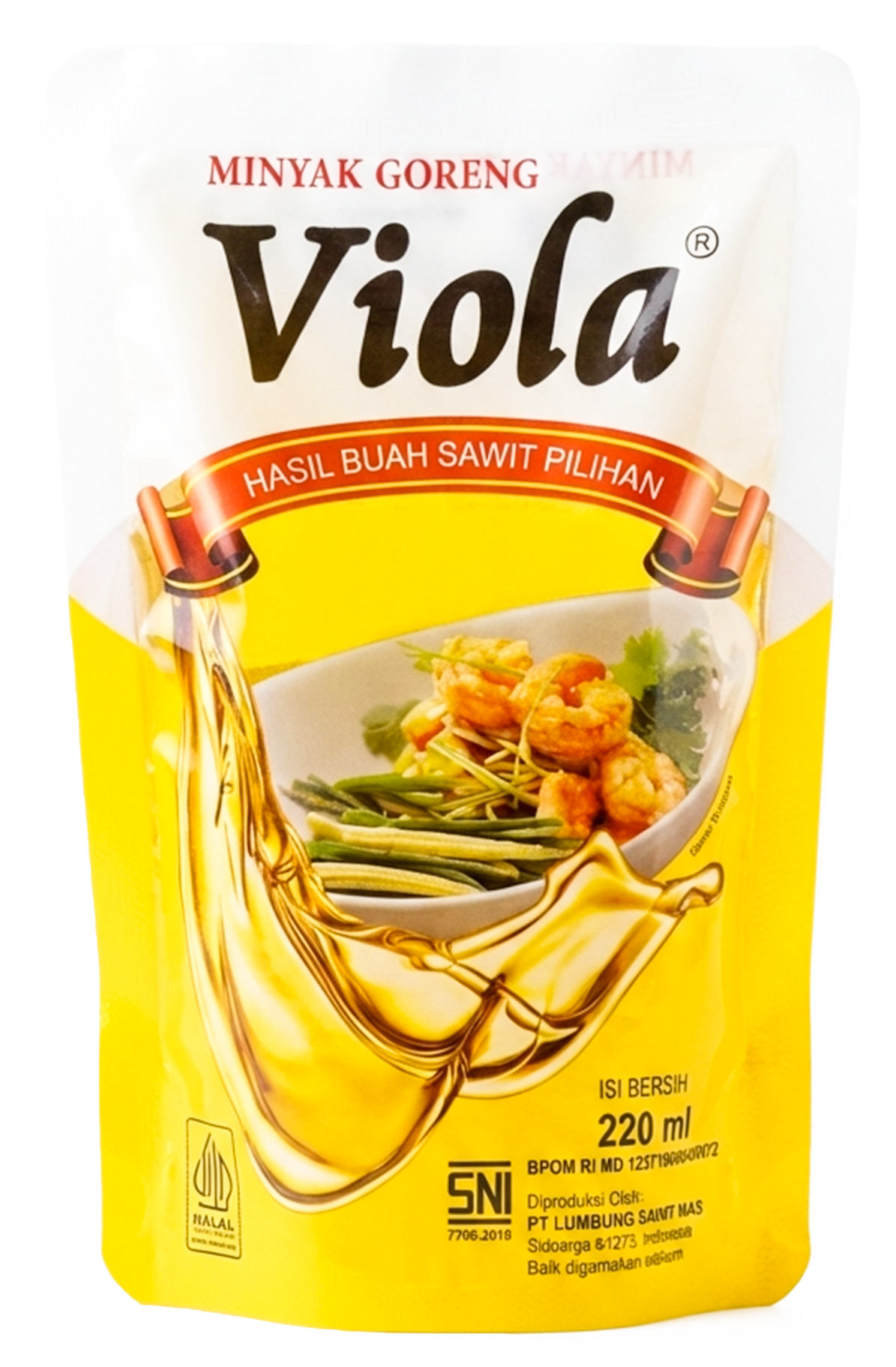 Minyak Kelapa Sawit pilihan, dengan Vitamin A (Mengandung Antioksidan Tokoferol), melewati penyaringan double-filtering untuk menghasilkan minyak jernih keemasan, tidak mudah menghitam, dan awet. Diproduksi oleh PT Lumbung Sawit Mas, kami memastikan Minyak Goreng Viola telah melewati proses quality control dan pengemasan sesuai standar prosedur sertifikasi SNI dan HALAL, untuk menghadirkan bahan baku dapur berkualitas dan ekonomis bagi rumah tangga Indonesia.